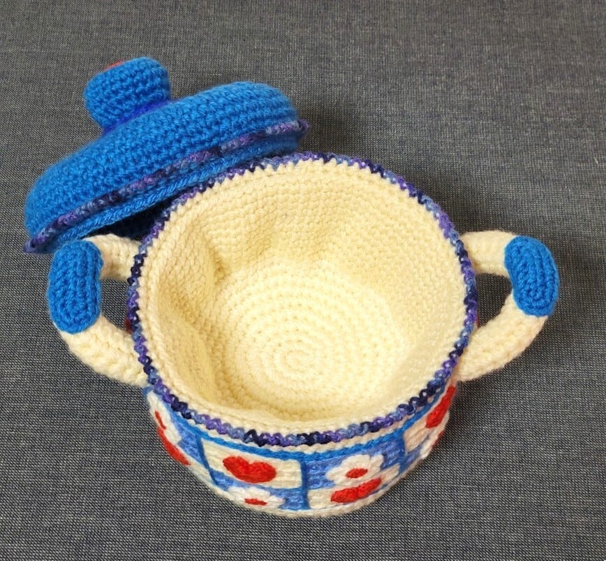 毛糸雑貨 北欧風 鍋 /ハートフラワー (置物・小物入れ)