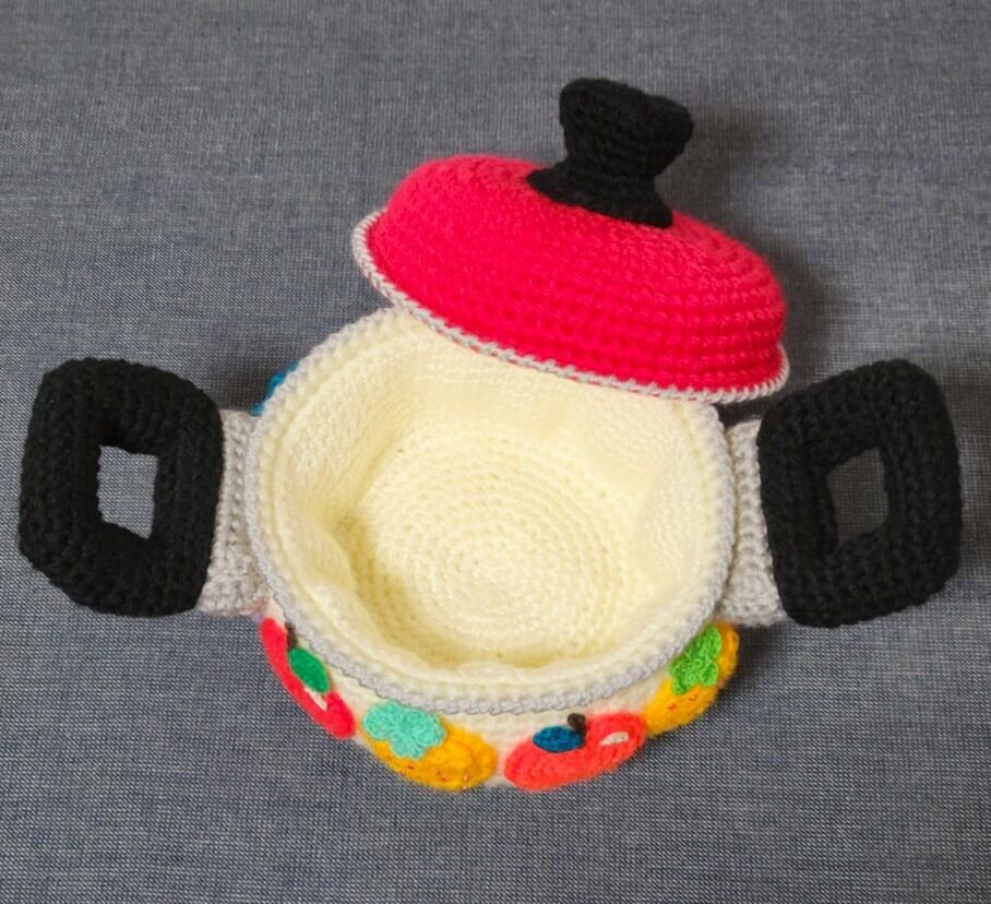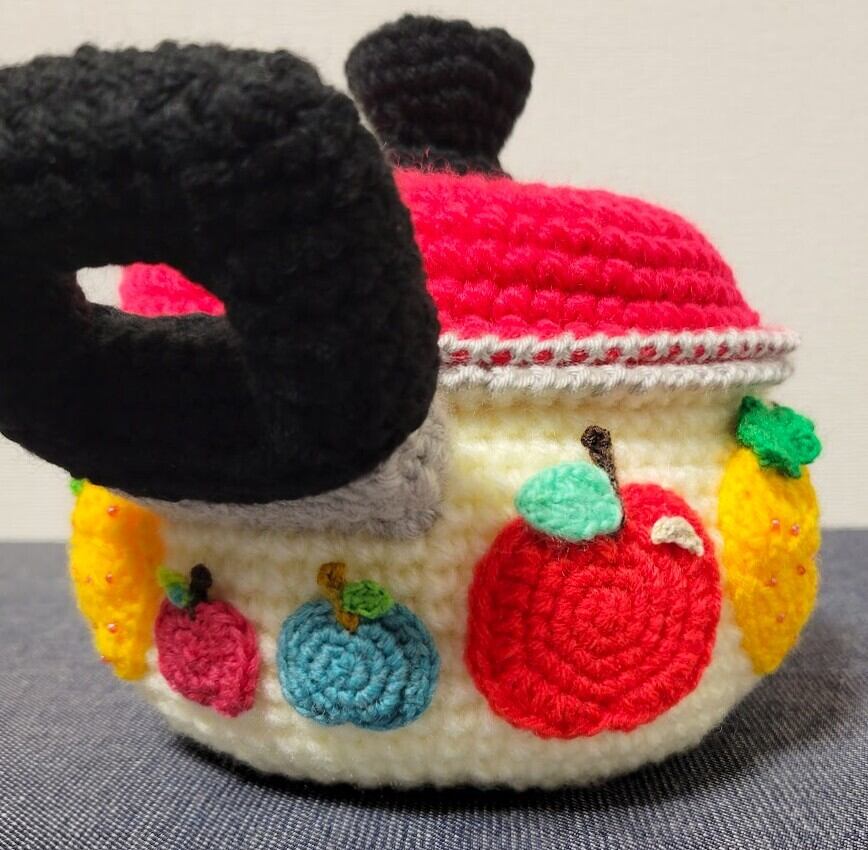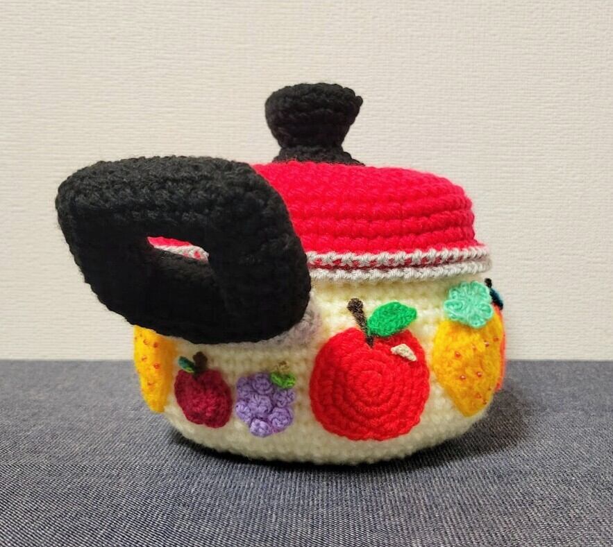 毛糸雑貨 昭和レトロホーロー鍋 / りんごといちご+ミニぶどう