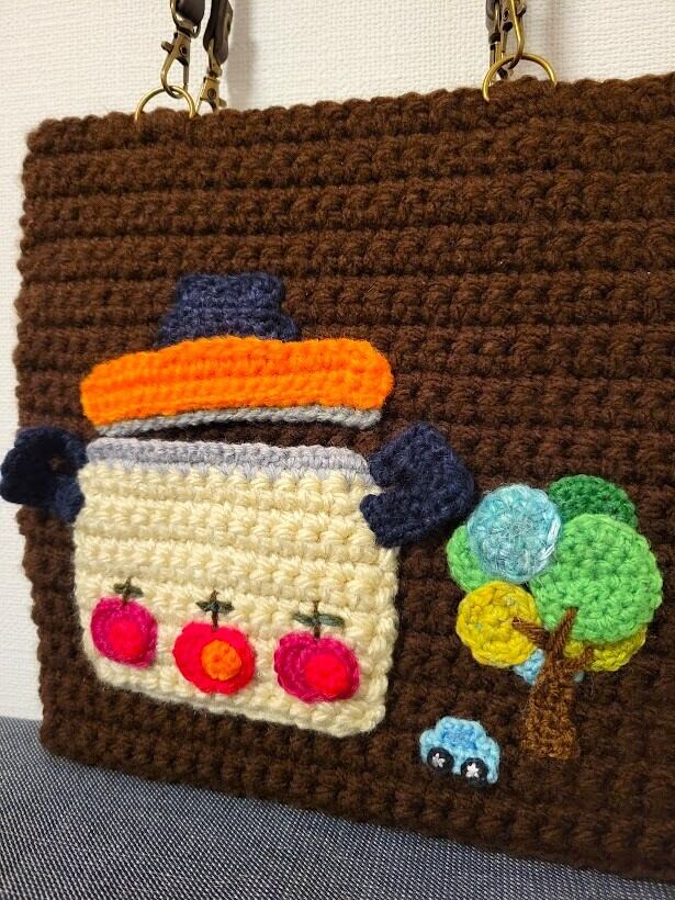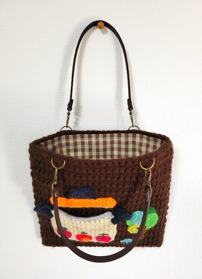 編み物・毛糸ミニ手さげバッグ "木より大きな 昭和レトロホーロー鍋"