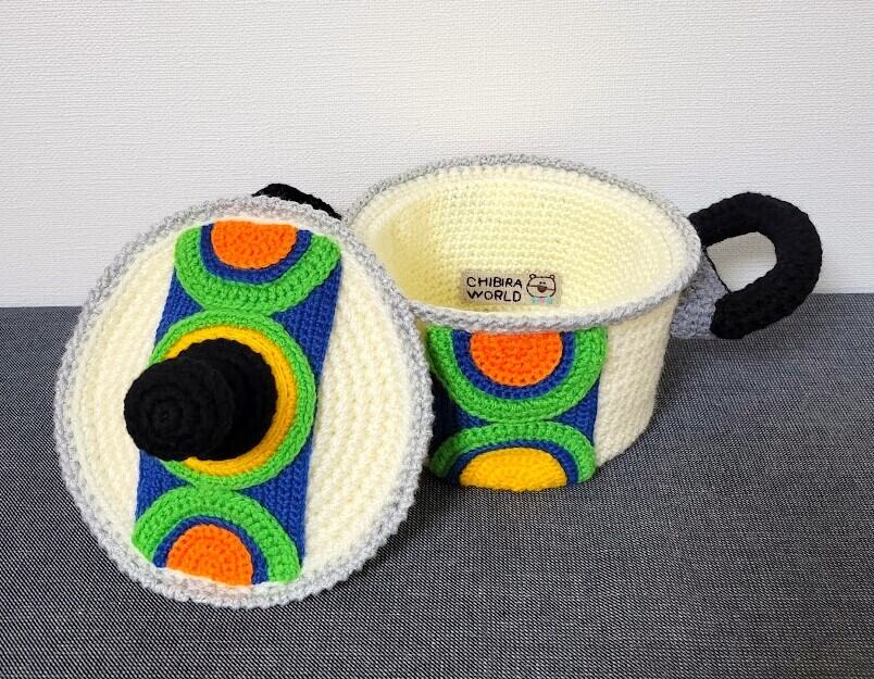 昭和レトロ鍋 "フローリーモダン” を毛糸で編んでみました♪